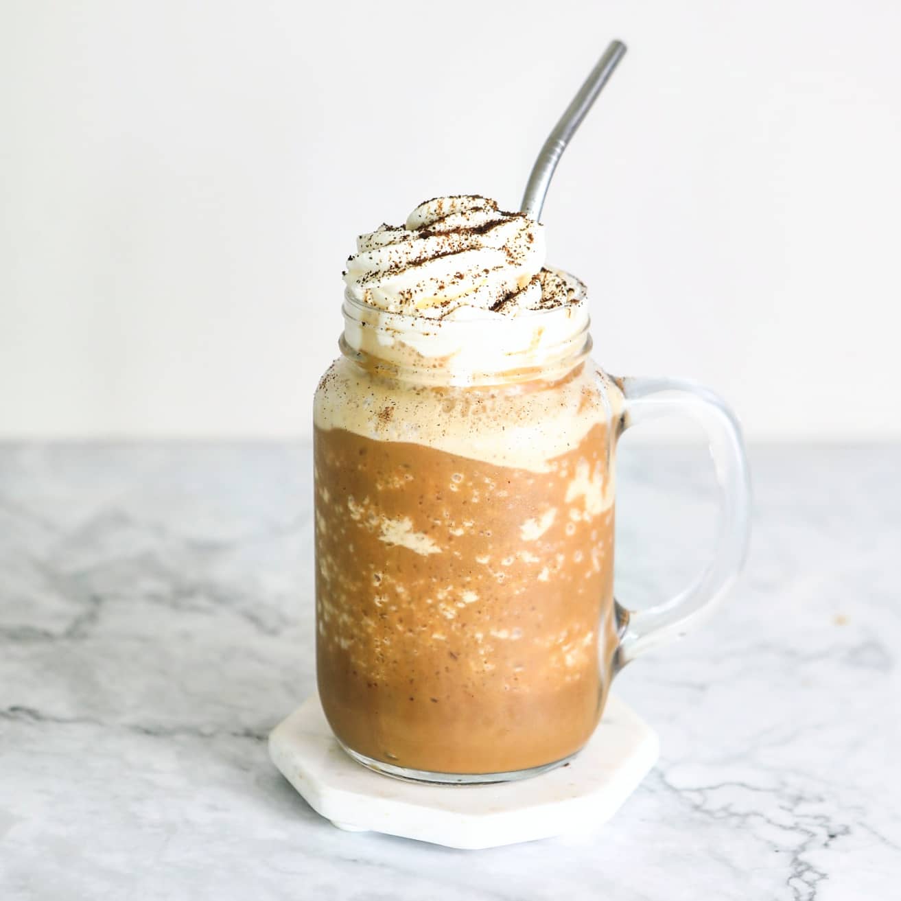 - Add all ingredients to a blender and blend for 40 - 60 seconds. The final blend should be slightly frozen, like an iced slushy